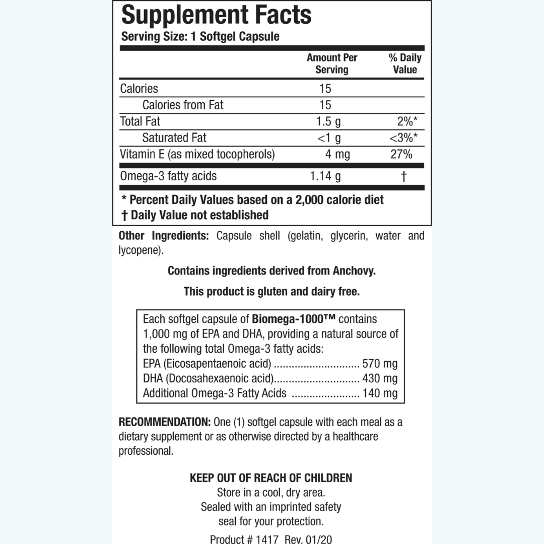Biomega-1000 provides a potent dose of omega-3 essential fatty acids (EFAs), sourced from a strategically-placed facility in the far South Pacific Ocean off the coast of Chile, guaranteeing the freshest raw material available, full traceability of the product, and unparalleled purity. Each capsule delivers an impressive 1,000 mg of EPA and DHA, making it the ideal choice for therapeutic dosing.