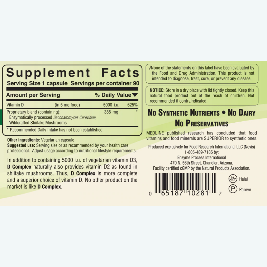 D Complex™ is a 100% vegan Food supplement that is intended to supply 100% Food vitamin D. Vitamin D helps with the absorption of food calcium and even has hormone-like functions within the human body.