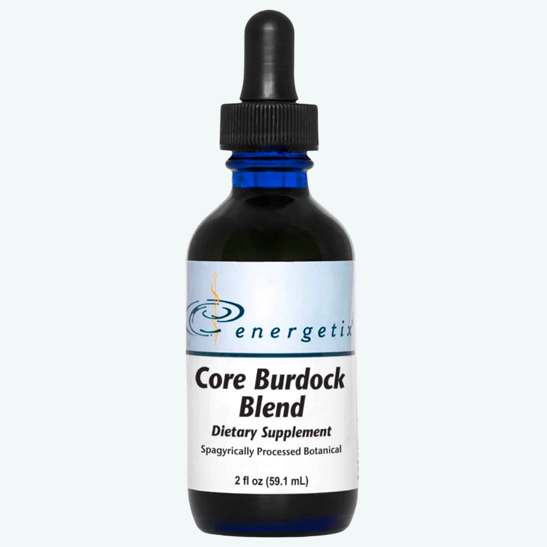 Core Burdock Blend is a spagyrically processed botanical blend featuring burdock root (Arctium lappa), sheep sorrel, slippery elm bark, and Chinese rhubarb root to support normal red blood cell production, normal liver function, and immune support.