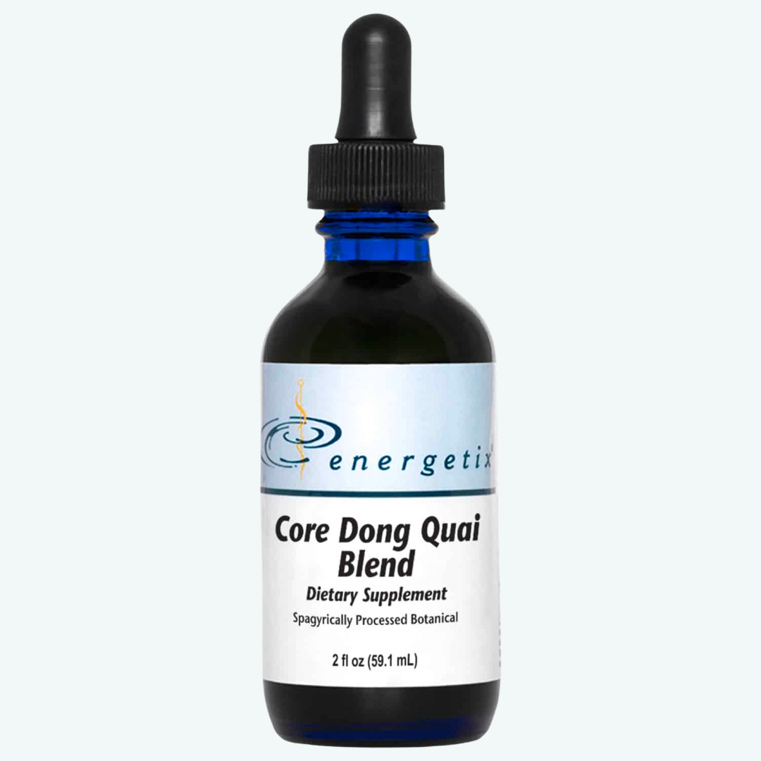 Core Dong Quai Blend is a spagyrically processed, comprehensive botanical blend featuring Dong Quai (Angelica sinensis), Chinese peony, false unicorn root, and other complementary herbs that support normal female reproductive function, normal female testosterone and progesterone balance, and menstrual cycle support.
