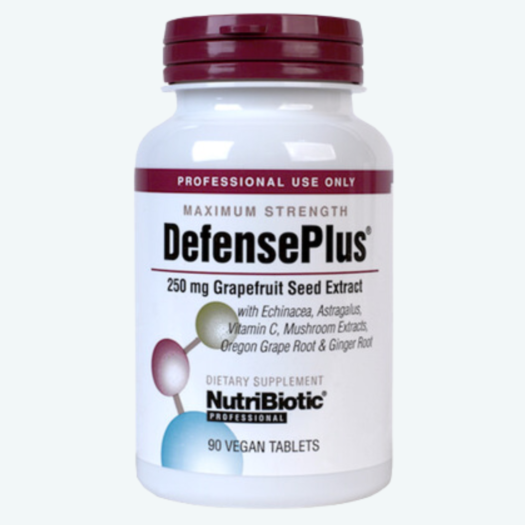 NutriBiotic Professional DefensePlus Tablets are a unique formulation combining grapefruit seed extract, vitamin C, astragalus, echinacea extract, Oregon grape root, ginger root extract, yarrow extract, zinc, and the mushroom extracts of reishi, maitake, and shiitake and are used by healthcare professionals worldwide.