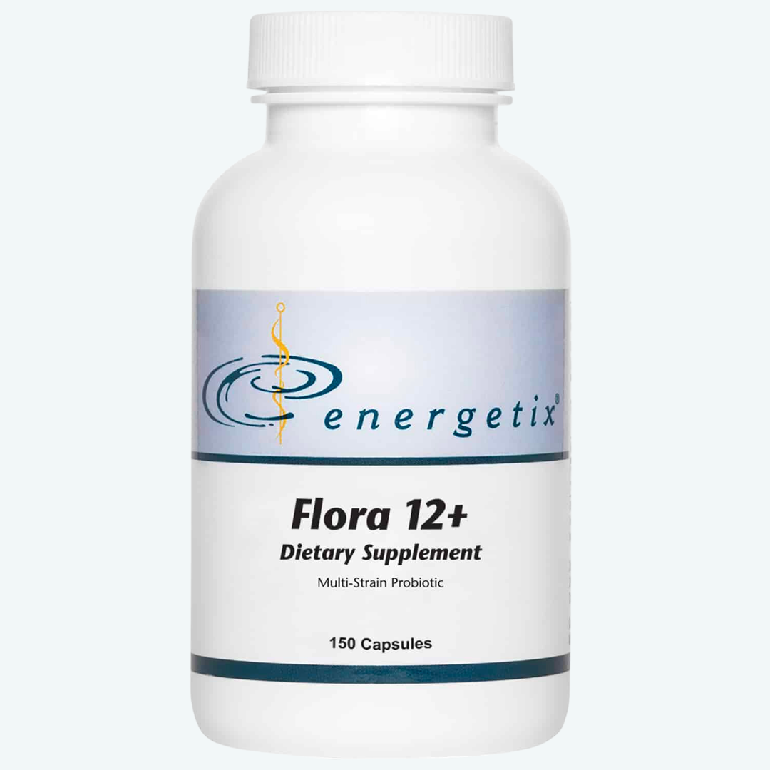 Flora 12+, a multi-strain probiotic, is a combination of twelve beneficial bacteria plus saccharomyces boulardii and the prebiotic fructooligosaccharides (FOS). This synergistic probiotic blend helps support normal digestion, a healthy intestinal barrier, and normal immune response through the repopulation of the GI tract with helpful bacterial strains.