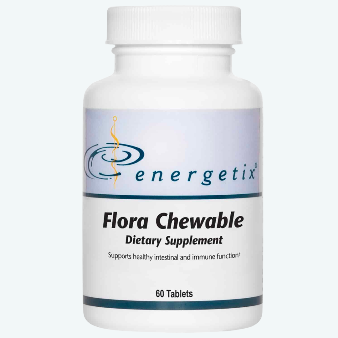 Flora Chewable contains the spore form probiotic bacillus coagulans and prebiotic fructooligosaccharides (FOS) to help support normal immune and digestive response. Bacillus coagulans—a lactic acid-producing bacterial endospore nourished by the FOS—aids in maintaining normal intestinal microflora balance.