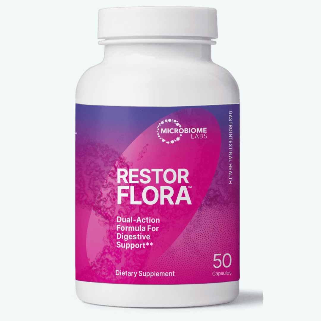 RestorFlora™ is a probiotic supplement that combines well-studied and widely-used probiotic strains Saccharomyces boulardii, Bacillus subtilis HU58, and Bacillus clausii SC109. This combination of probiotic yeast and bacteria offers comprehensive digestive flora support with an advanced, dual-action approach to maintain a healthy intestinal environment.